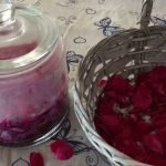 Prima di tutto mettete in infusione i petali di rosa (freschi o essiccati) nell’acqua minerale. Mettete sul fuoco e spegnete il fornello appena prima che l’infuso raggiunga il bollore. Mettete un piattino leggermente più piccolo della pentola che avete usato all’interno della stessa, in modo che i petali restino sul fondo, e lasciate raffreddare completamente. A questo punto filtrate e tenete da parte.