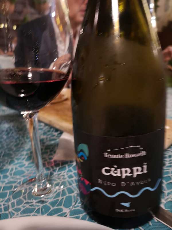 Al naso propone eleganti note di margherite e ginestre, sentori erbacei e frutta a polpa gialla matura. In bocca è fresco ed elegante dal sorso vibrante che si fa ricordare al lungo al palato. In ultimo, ma non ultimo, il protagonista della serata, il Curri Nero d’Avola 2017, premiato con la medaglia d’argento alla London Wine Competition, con il suo bel rosso rubino dal naso intenso di frutti rossi maturi e in confettura, caratterizzato da un tannino elegante e vellutato dal finale armonioso ed equilibrato.