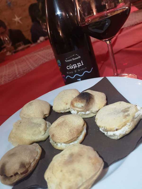 Un menù coraggioso, come i vini dal sapore intenso e robusto che raccontano il vigore delle piantagioni di vite della Valle del Belìce, atto a sfatare ben più di un pregiudizio, a cominciare da quello che riguarda l’uso del pesce insieme alla pizza, poi quello dell’abbinamento pizza e vino e, infine, quello del pesce con il