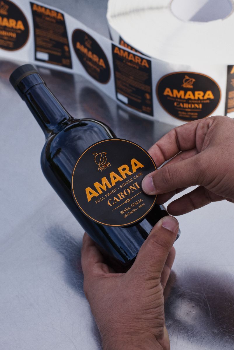 Amaro Amara dopo essere stato infuso tra le migliori scorze di arance rosse di Sicilia IGP e le erbe aromatiche dell’Etna, un processo che dura circa sei mesi, viene conferito all’interno delle botti di rovere americano e posto a maturare in una zona dell’antica masseria di famiglia, dove la temperatura e le condizioni di umidità sono pressoché costanti per diventare, dopo 12 lunghi mesi, Amara Caroni.