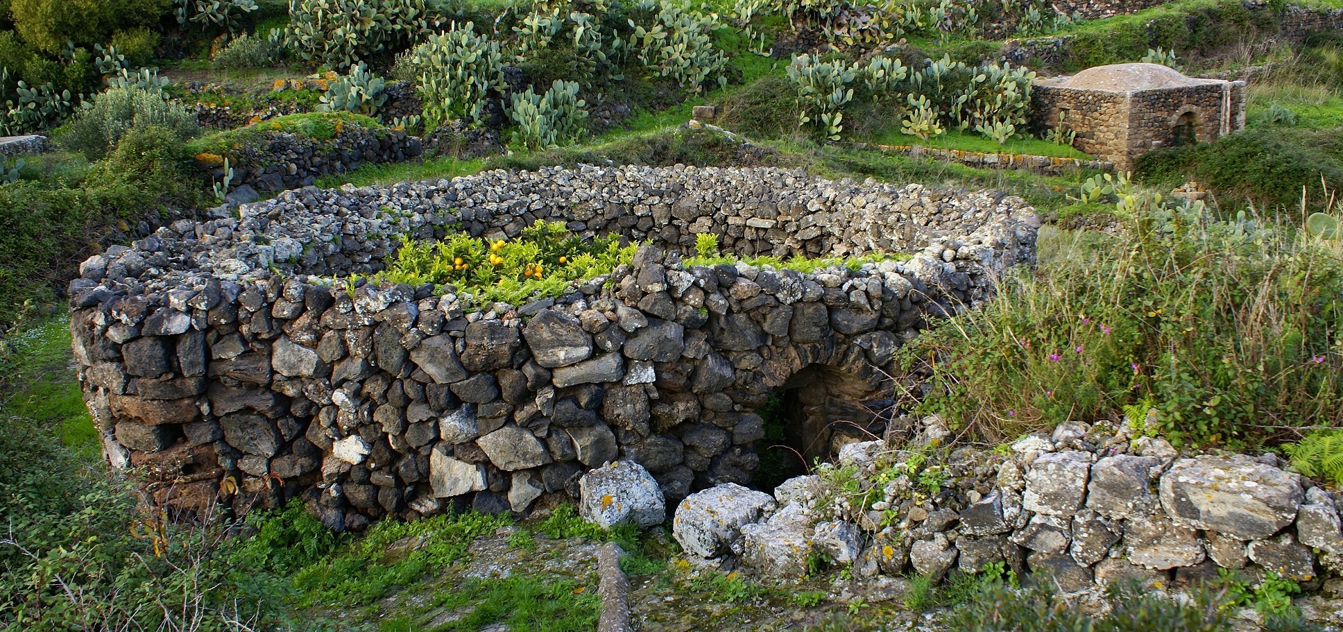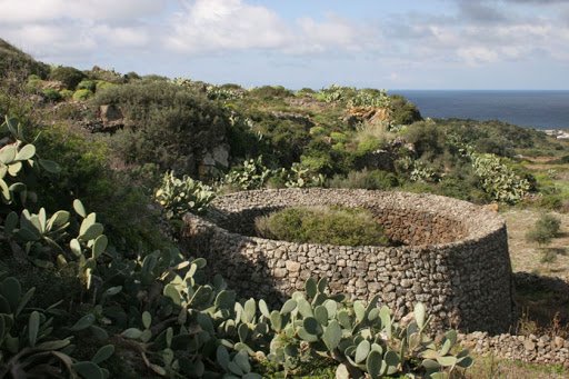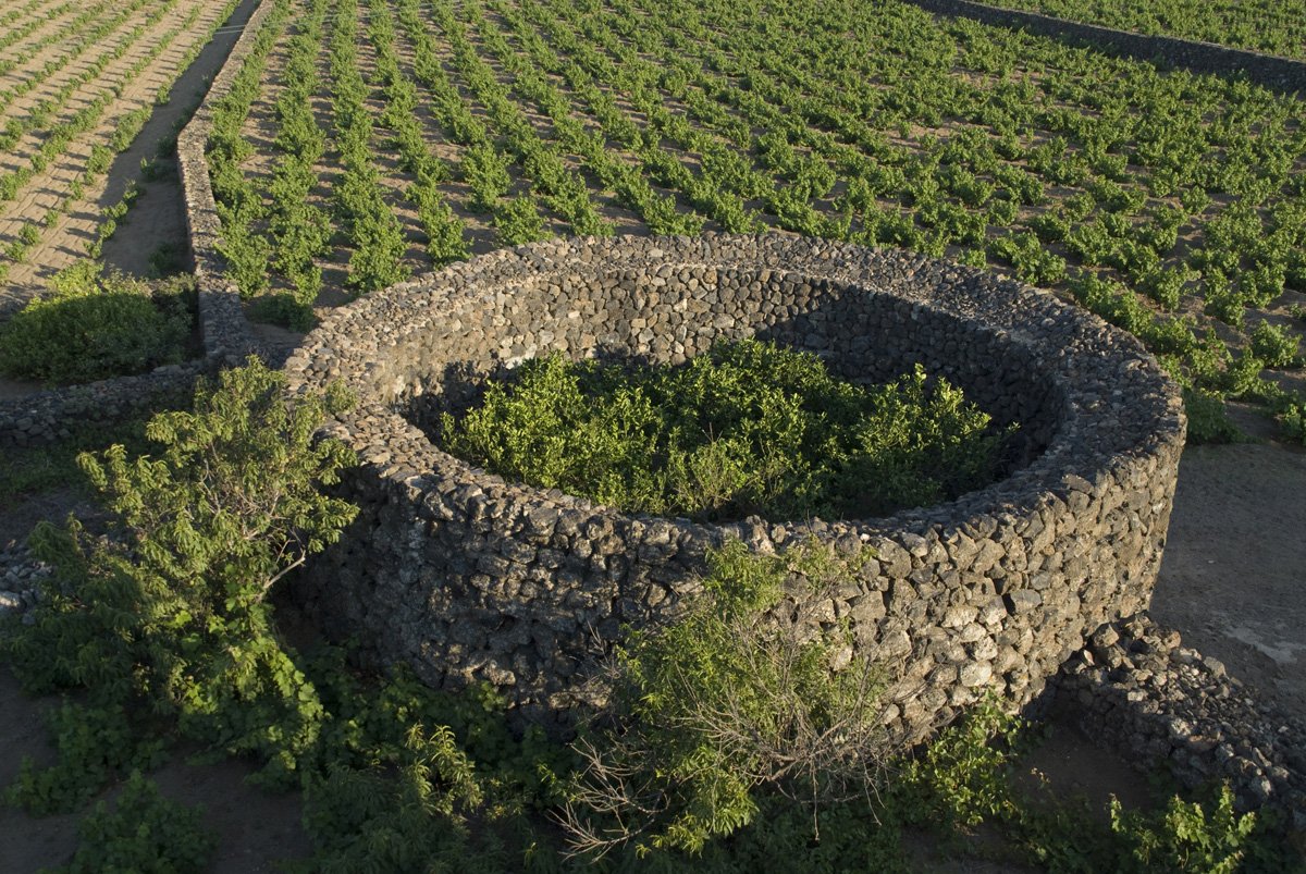 Quasi sempre di forma circolare e in pietra lavica, tipica di quest’isola di origine vulcanica, il giardino pantesco è costruito con mura a secco. Queste difendono le piante dal vento e creano all’interno un microclima che ne consente la sopravvivenza: grazie alla minore evaporazione dell’umidità dal terreno e alla condensa notturna che i muri trattengono tra le pietre, sono infatti garantite ombra ed una costante presenza di acqua. La pietra nutre l’agrume, creando uno spazio che si adatta alle dimensioni e alle esigenze dell’albero, quasi sacro al suo interno, imponente e severo all’esterno.