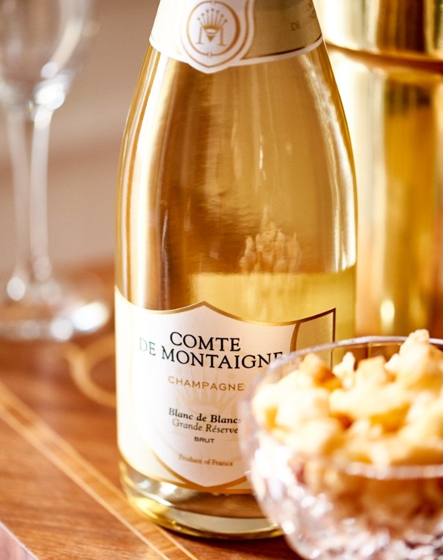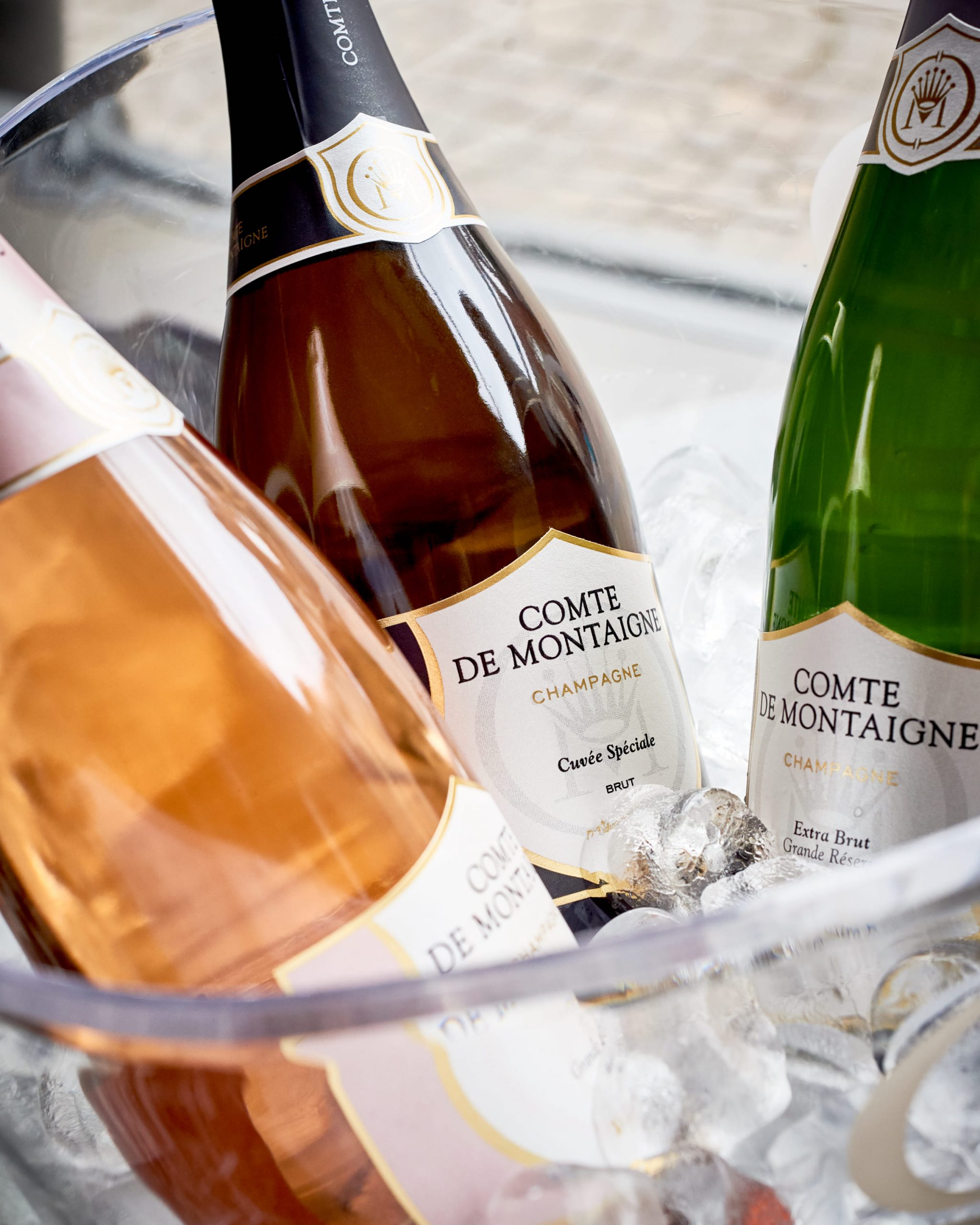 Passione per la terra, eco-sostenibilità, fedeltà ai valori sono le vere radici della filosofia imprenditoriale di Comte de Montaigne. Uno Champagne che ha cuore e che è sinonimo di valori genuini, emozione, calore, vicinanza, joie de vivre. Il terroir della Côte des Bar, inteso come microclima e insieme di caratteristiche minerali del terreno, è uno dei tratti identitari del marchio. Si tratta di un habitat speciale, dal clima temperato, oceanico, semi continentale, nel quale l’esposizione al sole è limitata ed il sottosuolo gessoso svolge una funzione termoregolatrice e protettiva delle radici del vigneto. Nelle fasi del ciclo produttivo di Comte de Montaigne la vigna ha un peso preminente rispetto alle fasi di cantina. Dalla vendemmia alla cantina, fino allo champagne pronto alla vendita, si predilige la tradizione e il cuore di tutti quelli che ci lavorano. Dalle Cuvée della Côte des Bar nascono cinque grandi champagne: il Brut (70% Pinot Noir e 30% Chardonnay); l’Extra Brut (70% Pinot Noir e 30% Chardonnay); il Rosé (100% Pinot Noir); il Blanc de Blancs (100% Chardonnay) e la Cuvée Speciale (100% Pinot Noir).