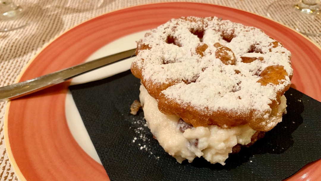 Si tratta di un dessert caratterizzato da un morbido cuore di ricotta custodito all’interno di un prezioso involucro realizzato con due frittelle croccanti di forma floreale.