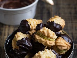 Il primo elemento fondamentale è il ripieno che deve essere morbido, cremoso e preferibilmente di un colore verde non troppo acceso, il biscotto di pasta frolla fragrante e ben cotto, la parte intinta nel cioccolato, rigorosamente fondente, non deve mai essere al di sotto della metà dell’intero altrimenti non riesce a smorzare la dolcezza del ripieno.