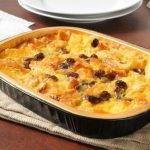 Adagiate in maniera ordinata le fette di panettone o pandoro. Irroratele con il latte, cospargetele con la frutta secca, la frutta disidratata e le spezie e i fiocchetti di burro. Infornate e cuocete il tutto per 20 minuti, quindi sfornatelo e lasciatelo un po’ intiepidire prima di servirlo. Se volete potete accompagnarlo con una pallina di gelato alla vaniglia o con panna montata.