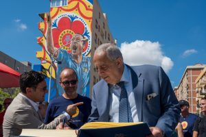 Presenti quasi tutti i 19 partner, i partner tecnici, i media partner del progetto che, tengono a precisare gli organizzatori. “E’ stato realizzato con contribuzione sia pubblica che privata ed in parte autoprodotto”. L’artist Andrea Sposari, ha raccontato dell’affetto con cui è stato accolto dalla città, dai residenti e dalla famiglia Schillaci che ha seguito la nascita e crescita del murale pennellata dopo pennellata. Emozionante anche l’esibizione di Sabu Alaimo con il suo brano Totò scritto il giorno del funerale del campione, e i cori dei ragazzi di Curva 12, che hanno scandito in coro il nome di Totò.