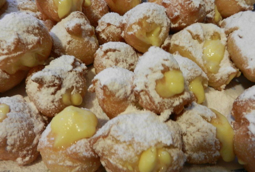 Si tratta di un dolce dalla forma rotonda, dall’impasto morbido e dall’aspetto dorato che può essere riempito sia con crema gialla, aromatizzata al limone o alla vaniglia, che con quella di ricotta aromatizzata alla cannella. In entrambi i casi si tratta di un dolce che sin dal primo morso “esplode” in bocca in un tripudio di sapori e consistenze che deliziano il palato e coccolano lo spirito.