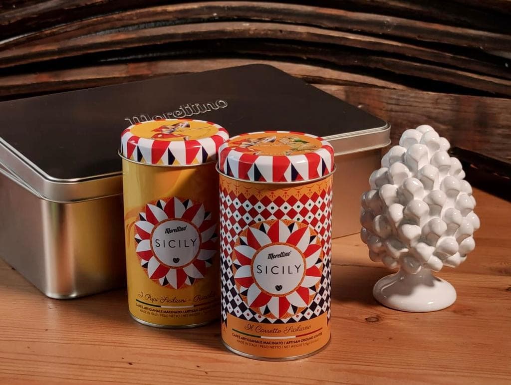 Le “Gift Box Sicily Boutique Coffee” sono dei piccoli scrigni che racchiudono i profumi e i sapori della tradizione dell’Isola. All’interno, infatti, si trovano una serie di simboli della tradizione locale, dalle pigne in ceramica create a mano da piccoli artigiani siciliani alle caffettiere, simbolo del rituale del caffè, accompagnate dalle esclusive latte della linea “Sicily Boutique Coffee – I Pupi siciliani”, disegnate da designer palermitani, che raffigurano Orlando, Rinaldo e Carlo Magno, i protagonisti dell’Opera dei Pupi, rappresentazione teatrale simbolo della cultura della Sicilia.