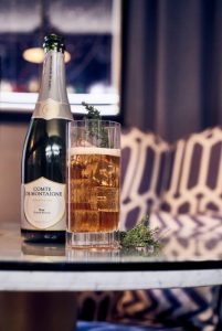 Gli ingredienti “segreti”: Champagne Comte de Montaigne Brut Grande Réserve; Gin; Menta; Succo di Lime; Zucchero