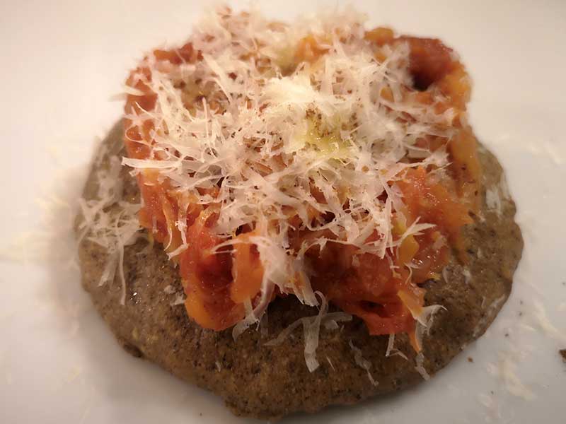 Non c’è da stupirsi, quindi, se all’interno del menù si trovano pietanze che ricordano i manicaretti tradizionali delle domeniche nelle famiglie sicule impreziositi da quel tocco gourmet che fa la differenza come lo sfincione a vapore, i tagghiarini con ragù, il cous cous in zuppa di pesce e crostacei o il “Magnum” di cannolo, solo per citarne alcuni. Al ricco menù del ristorante si aggiunge, poi, la specialità della casa: la pizza al vapore, cotta utilizzando un’antica tecnica cinese, adoperata per la cottura dei classici ravioli, che conferisce ai panetti, impastati con farine di grani antichi siciliani, un interno soffice e spugnoso racchiuso in un involucro croccante. L’idea è quella di proporre una versione gourmet della pizza in un menù degustazione, che affianca quello del ristorante, proponendo alla clientela un’alternativa al classico concetto di pizza che si trova in pizzeria. I condimenti di questi soffici dischi di pizza sono preparati con ingredienti di qualità di cui vengono studiati con cura gli abbinamenti, mutuandoli anche dal menù del ristorante, in modo da creare una continuità tra le pietanze e le pizze gourmet proposte alla carta o nel menù degustazione.