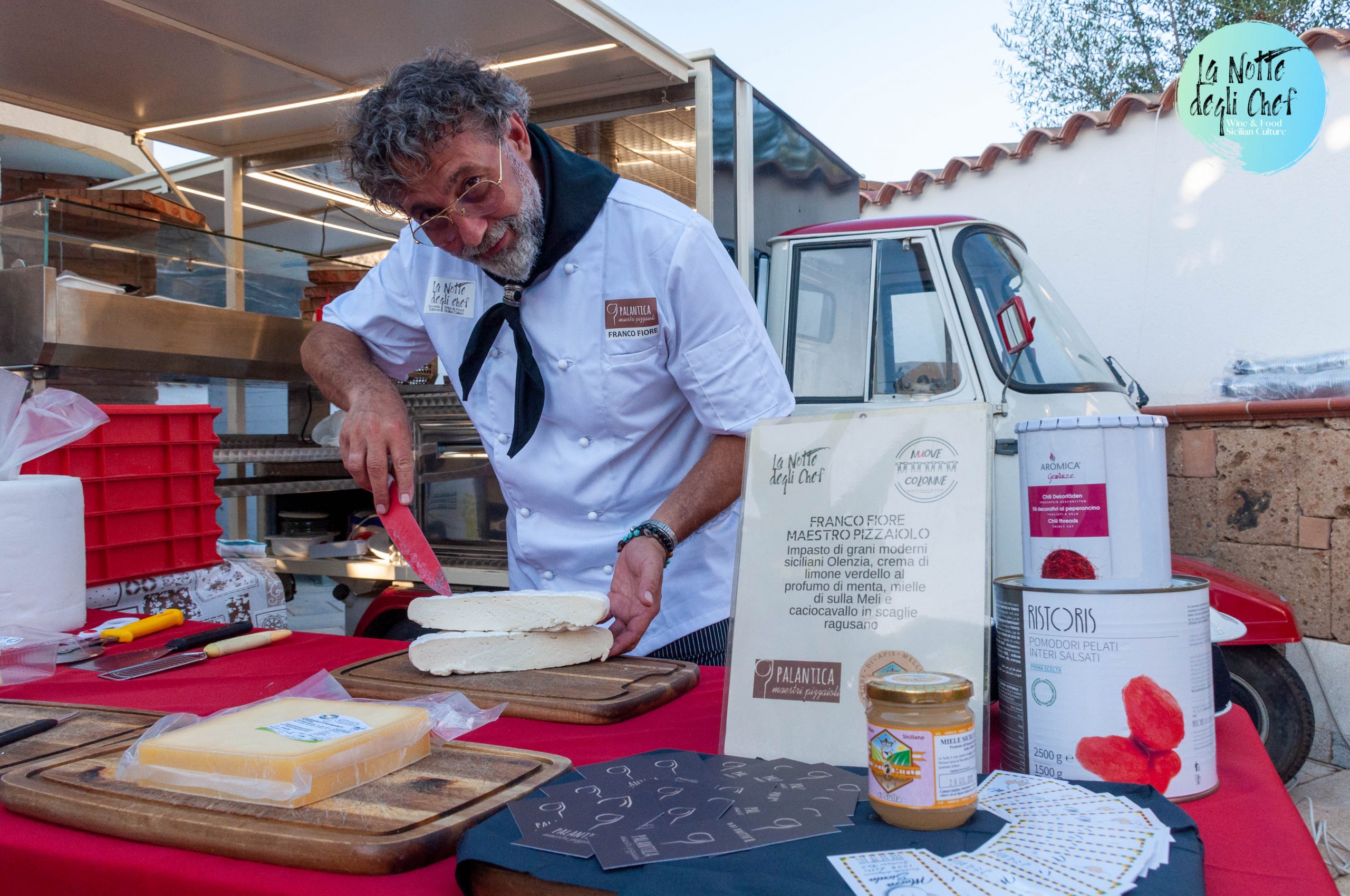 Dopo questa perfomance è stata la volta dei piatti degli otto chef presenti. In particolare ì partecipanti hanno assaggiato il macco di fave alle mandorle con calamari, gamberetti e vongole alla marinara, yogurt greco alle ortiche e cialda di pane di tumminia di Dario D’Angelo ed Antonino Gagliano Resident chef “Nuove Colonne” Bagheria ; la pizza ai grani antichi siciliani con fiordilatte di Belmonte, tenerumi, cozze nostrane, menta e limone di Salvatore Cucinotta Maestro Pizzaiolo “Nuove Colonne” Bagheria , la caponata di polpo con stracciatella ai tenerumi e cialda di pane dello chef Massimo Scirè del locale “Anni 20”; il bocconcino gourmet alla cipolla rossa di Tropea, burger di polpo e patate e mayo di peperone rosso di Nicola Macchiarella Chef del “Ristorante L’Ulivo” di Trabia; ì raviolini di carciofi con gambero rosso di Mazara in due consistenze e granella di mandorla tostata fornito dal pastificio In Pasta di Giuseppe Muscarella preparati da Antonio Militello Chef “Ristoris” ; la crocchetta di baccalà mantecata al profumo di limone verdello e maionese al nero di seppia di Fabio Potenzano Chef Patron del ristorante “Tutti a Tavola”di Bagheria e la pizza ai grani moderni siciliani Olenzia, crema di limone verdello al profumo di menta, miele di sulla e caciocavallo in scaglie ragusano preparata dal Maestro Pizzaiolo Franco Fiore Maestro della pizzeria Palantica.
