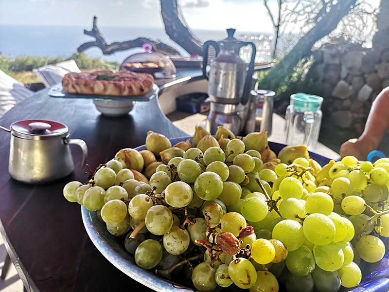 La Casa dei fiori è, infatti, anche un Resort con piscina in cui gli alloggi sono costituiti da singoli dammusi indipendenti i cui ospiti ogni mattina si deliziano grazie ad un’opulenta colazione a base di torte, crostate, biscotti e marmellate, tutti rigorosamente preparati dalla instancabile Maria Concetta che è davvero un prezioso punto di riferimento per una perfetta vacanza pantesca.